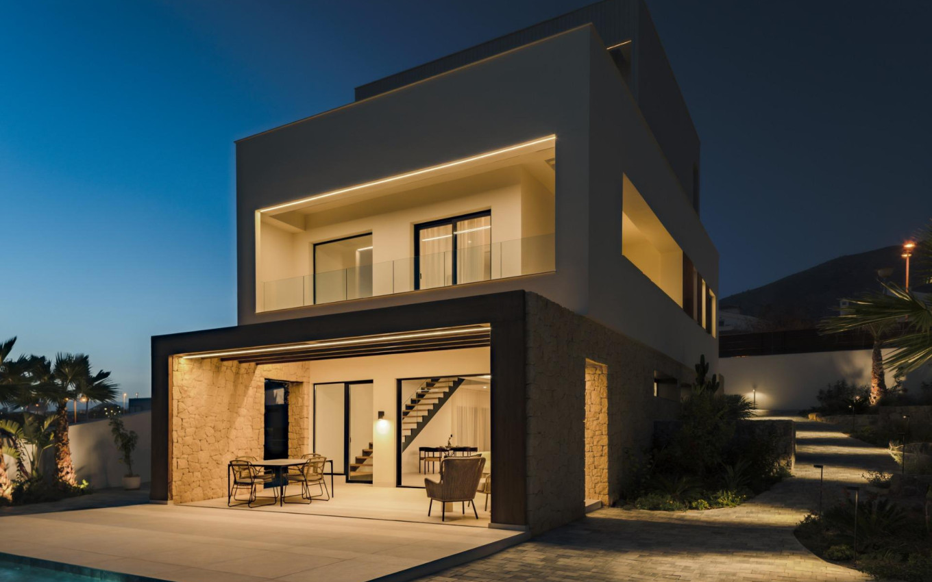 VILLAS NEUVES À FINESTRAT Nouvelle construction de villas modernes à Finestrat. Villas avec 4 chambres et 4 salles de bains, cuisine ouverte avec coin salon, terrasse avec vue magnifique sur Benidorm, jardin privé avec piscine et place de parking. Le jardin latéral, orné de cactus et de gravier blanc, relie le niveau d'accès 1 à l'étage principal (niveau O). L'utilisation de l'herbe naturelle dans le reste du terrain est présentée comme une caractéristique supplémentaire grâce à un projet d'aménagement paysager méticuleusement conçu. Chaque niveau est accentué par un matériau qui met en valeur son essence. Le niveau O est revêtu de pierre calcaire naturelle, qui soutient l'ensemble de la structure. Le niveau 1, avec sa finition monocouche et ses volets en bois, protège la partie la plus intime de la résidence. Enfin, le niveau 2, où se trouve la chambre principale, s'ouvre sur une terrasse spacieuse et est recouvert d'un revêtement monocouche texturé dans un ton chaud. L'esthétique méditerranéenne est obtenue par une fusion parfaite de la tradition, de l'architecture moderne et de la nature. Finestrat est situé dans la région Marina Baixa de la Costa Blanca, à proximité de Benidorm et à environ 40 kilomètres de la ville d'Alicante et de l'aéroport international. Le village est situé sur le flanc de la montagne Puig Campana et offre une vue magnifique sur les montagnes, la côte et la mer Méditerranée. Benidorm se trouve à cinq minutes en voiture des propriétés et offre tous les services dont vous avez besoin, notamment des magasins, des bars, des restaurants, des supermarchés, des banques, des pharmacies et plusieurs écoles privées internationales.