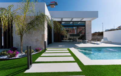 Villa de luxe en première ligne du Golf Il dispose d'un ascenseur à tous les étages de la villa, de terrasses donnant sur le golf, d'un espace sportif, d'un sauna et d'une piscine privée. Il est situé dans un endroit avec des services médicaux, une école suédoise, des écoles publiques, des terrains de jeux, à 15 minutes des plages de Guardamar et à 5 minutes de la vieille ville de Rojales.