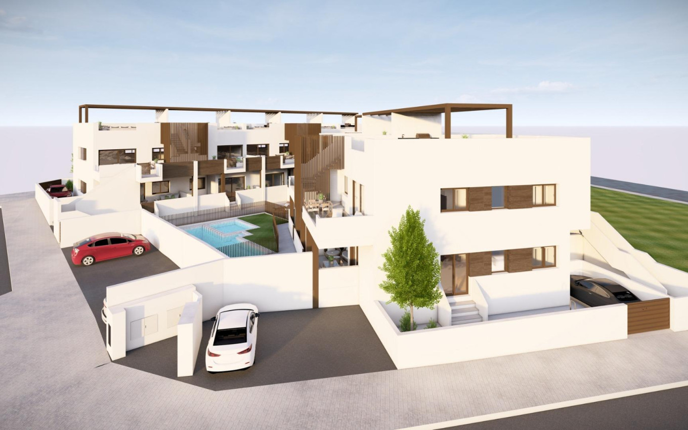 NOUVELLE CONSTRUCTION RÉSIDENTIELLE D'APPARTEMENTS DE PLAIN-PIED À PILAR DE LA HORADADA Nouvelle construction d'appartements de plain-pied situés à Pilar de la Horadada. Le projet de construction neuve comprend 16 bungalows avec 3 chambres et 2 salles de bains, au dernier étage avec solarium privé et au rez-de-chaussée avec une belle terrasse et un jardin privé. Toutes les propriétés auront accès à une piscine commune. Chaque propriété dispose d'une place de parking. Il est situé dans un quartier résidentiel proche de tous les services. Pilar de la Horadada est un village espagnol typique situé dans la partie la plus méridionale de la Costa Blanca. La grande rue principale abrite des supermarchés, de nombreuses boutiques, des restaurants et des bars, ainsi que de jolies places. Les belles plages de Torre de la Horadada et de Mil Palmeras, avec leur promenade de sable fin, ne sont qu'à 5 minutes. Les aéroports de Corvera (Murcia) et d'Alicante sont respectivement à 40 et 55 minutes.