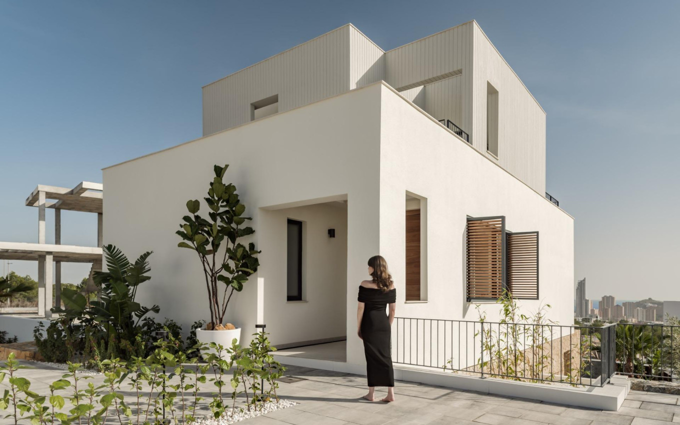 NIEUWBOUW VILLA'S IN FINESTRAT Nieuwbouw Moderne villa's in Finestrat. Villa's met 4 slaapkamers en 4 badkamers, open keuken met zithoek, terras met prachtig uitzicht over Benidorm, privétuin met zwembad en parkeerplaats. De zijtuin, versierd met cactussen en wit grind, verbindt het toegangsniveau 1 met de hoofdverdieping (niveau O). Het gebruik van natuurlijk gras op de rest van het terrein wordt gepresenteerd als een extra functie door middel van een zorgvuldig ontworpen landschapsproject. Elk niveau wordt geaccentueerd met een materiaal dat de essentie ervan versterkt. Niveau O is bekleed met natuurlijke kalksteen die de hele structuur ondersteunt. Niveau 1, met zijn afwerking in één laag en houten luiken, beschermt het meest intieme deel van de woning. Niveau 2 ten slotte, waar zich de hoofdslaapkamer bevindt, opent naar een ruim terras en is afgewerkt met monolayer met textuur in een warme tint. De mediterrane esthetiek wordt bereikt door een perfecte samensmelting van traditie, moderne architectuur en natuur. Finestrat ligt in de regio Marina Baixa aan de Costa Blanca, vlakbij het naburige Benidorm en op ongeveer 40 kilometer van de stad Alicante en de internationale luchthaven. Het dorp ligt op de berghelling van Puig Campana en biedt een prachtig uitzicht op de bergen, de kust en de Middellandse Zee. Benidorm ligt op slechts vijf minuten rijden van de woningen en biedt alle voorzieningen die je nodig hebt, zoals winkels, bars, restaurants, supermarkten, banken, apotheken en verschillende internationale privéscholen.