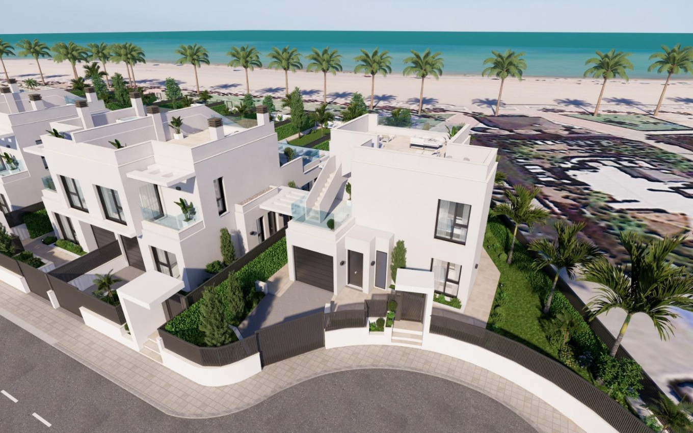 Luxe nieuwbouw villa's aan het water in Los Alcázares Ontdek het ultieme mediterrane leven met dit exclusieve woonproject, met negen eigentijdse villa's direct aan het water in de prachtige kustplaats Los Alcázares, Murcia. Gelegen in de gewilde wijk Nueva Ribera, zijn deze villa's ontworpen voor luxe, privacy en gemak, met nabijgelegen toegang tot golfbanen, winkelcentra en vervoersknooppunten. Elke villa biedt een hoogwaardige afwerking, adembenemend uitzicht op zee en een privézwembad, waardoor ze de ideale keuze zijn voor wie op zoek is naar een modern kustverblijf. Toplocatie in Los Alcázares Dit woonproject ligt in Los Alcázares, een charmant stadje aan de Spaanse Costa Cálida, op een benijdenswaardige locatie met directe toegang tot de promenade aan het water. Dit rustige gebied combineert de rust van het leven aan zee met gemakkelijke toegang tot voorzieningen. Het bruisende centrum van Los Alcázares ligt op slechts 2 km afstand, terwijl de internationale luchthaven van Murcia op slechts 35 km ligt, wat reizen gemakkelijk maakt. De gerenommeerde Roda Golf Club ligt op 4 km afstand en biedt recreatiemogelijkheden dicht bij huis. De snelweg AP-7 biedt snelle toegang tot nabijgelegen steden en attracties. Exclusieve villa's met eersteklas voorzieningen Het project omvat in totaal negen villa's: acht twee-onder-een-kapwoningen en een alleenstaande villa, elk op een perceel van meer dan 300 vierkante meter. Deze ruime woningen zijn ontworpen met het oog op elegantie en comfort: Privézwembad en solarium: Elke villa heeft een zoutwater privézwembad en een solarium op het dak, uitgerust met een jacuzzi, sfeervolle LED-verlichting en een pre-installatie voor een buitenkeuken - ideaal voor entertainment terwijl u geniet van het uitzicht op de Mar Menor. Moderne, volledig uitgeruste keuken: De keuken is voorzien van geïntegreerde apparatuur van Bosch, waaronder een oven, magnetron, inductiekookplaat en afzuigkap. Het strakke ontwerp is voorzien van een schiereiland en werkbladen van Silestone of porselein. Geavanceerde klimaatbeheersing: Geniet het hele jaar door van comfort met gekanaliseerde klimaatregeling op elke verdieping, met krachtige units van Mitsubishi of Daikin. Stijlvolle badkamers: Hoogwaardige badkamers hebben hangende badmeubels, douchebakken van hars en ingebouwde doucheschermen. Energie-efficiënt ontwerp: Elke villa is voorzien van geavanceerde isolatie, Guardian Sun akoestische ramen met dubbele beglazing en een Aerothermisch waterverwarmingssysteem voor optimale energie-efficiëntie. Slimme kenmerken: Elektrische rolluiken, LED buitenverlichting en een pre-installatie voor een oplaadstation voor elektrische voertuigen voegen modern gemak toe. Veilige en besloten gemeenschap Deze villa's liggen in een besloten, omheinde gemeenschap met 24-uurs beveiliging en bieden vanuit elke tuin directe toegang tot de strandboulevard, waardoor zowel privacy als connectiviteit gegarandeerd zijn. Ervaar het leven aan de kust in Los Alcázares - plan vandaag nog een bezoek! Omarm de luxe van het leven aan de kust in Los Alcázares. Met de nabijheid van Roda Golf en winkelcentra binnen 5 km bieden deze villa's een ongeëvenaarde levensstijl. Neem vandaag nog contact met ons op om een bezichtiging te plannen en je droomhuis aan het water veilig te stellen.