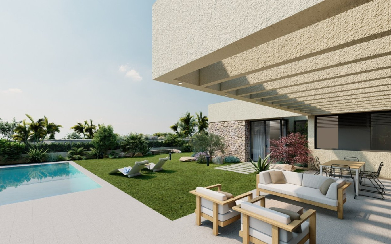 NIEUWBOUW VILLA'S IN ALTAONA GOLF RESORT, MURCIA Nieuwbouw van prachtige villa's in Altaona Golf resort, Murcia. Villa heeft 2 slaapkamers, 2 badkamers, open keuken met de zithoek en directe toegang tot de tuin met privé zwembad en parkeerplaats. De villa's zijn speciaal ontworpen om eindeloos uitzicht te bieden op de golfbaan, de meren en het verre platteland, zowel van binnen als van buiten. Tuinen en terrassen op het zuiden zorgen ervoor dat u kunt genieten van de warme winterzon, en royale glazen ramen bieden extra uitzicht over de regio vanuit het comfort van het interieur. De villa's zijn ontworpen om comfort, privacy en efficiëntie te maximaliseren. Inheemse planten zijn op de daken geplaatst om het gevoel van een andere natuurlijke ruimte te creëren. Gelegen in een bevoorrechte omgeving waar we rustig kunnen leven, in contact met de natuur en de bergen, bereiken we levenskwaliteit, frisse lucht en open ruimtes. Exclusieve nieuwbouw residentieel gelegen in Altaona Golf op slechts 15 minuten met de auto van het centrum van de hoofdstad Murcia en 15 minuten van de stranden kunt u genieten van de rust en veiligheid aangeboden door de Golfbaan die 18 holes heeft en het comfort om dicht bij alle diensten te wonen. In het ruime resort zijn allerlei diensten inbegrepen zoals een winkelcentrum, tennis-, paddle- en basketbalvelden. De voorpoort is altijd bemand, waardoor Altaona een plek is waar kinderen veilig buiten kunnen spelen. In totaal telt het Altaona resort zo'n 500 woningen, verspreid over een oppervlakte van 3,6 miljoen m2. Hier zijn enkele lokale hoogtepunten: - Murcia centrum: 15 minuten. - Strand: 20 minuten. - Luchthaven Corvera: 20 minuten. - Vliegveld Alicante: 45 minuten. - Winkelcentrum (La Alberca): 8 minuten. - Ziekenhuis: 10 minuten
