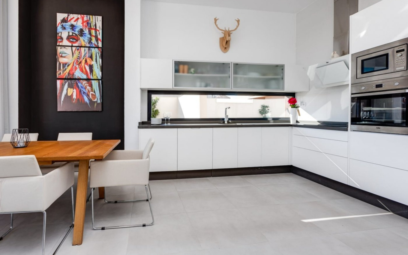 NIEUWBOUW VILLA'S IN PILAR DE LA HORADADA Nieuwbouw residentieel van 6 vrijstaande villa's in Pilar de la Horadada. Nieuwbouw gelijkvloerse villa's hebben 3 slaapkamers, 2 badkamers, open keuken met de woonkamer, inbouwkasten, prive tuin met off road parkeerplaats. Deze fantastische huizen zijn bedekt met natuursteen voor minimaal onderhoud, de dubbele hoogte van de woonkamer en de grote ramen zorgen voor veel natuurlijk licht. Pilar de la Horadada is de meest zuidelijke stad en gemeente aan de Costa Blanca in de provincie Alicante. De stad ligt op de grens tussen de Comunidad Valenciana en de regio Murcia. De stad Pilar de la Horadada is een typisch Spaans stadje gelegen op slechts 2 km van de kust en de populaire stranden van Torre de la Horadada. In het centrum van Pilar de la Horadada vindt u alle voorzieningen: winkels, patisserieën, banken, enz. langs de hoofdstraat 'Calle Mayor'. U zult ook een heerlijke sfeer ervaren in de buurt van de plaatselijke kerk op de 'Plaza de la Iglesia' waar zich verschillende cafés bevinden. In Pilar de la Horadada is er ook een goed ontwikkeld fiets- en wandelpadennetwerk, en er is ook een groot aanbod van diverse sportactiviteiten. Lo Romero 18 holes golfbaan ligt op slechts een klein eindje rijden van de stad. De luchthavens van Corvera (Murcia) en Alicante liggen op respectievelijk 40 en 55 minuten afstand.