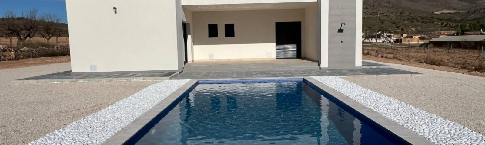 NIEUWBOUW VILLA'S IN HONDON DE LAS NIEVES Moderne nieuwbouw villa's in Hondon de las Nieves. Villa's bestaande uit twee verdiepingen en kelder met Engelse binnenplaats, heeft 3 slaapkamers, 3 badkamers, gastentoilet, open keuken met de zithoek, inbouwkasten, terras en privé solarium. De ruime kavels hebben een privétuin met een zwembad, een barbecueplaats en de mogelijkheid om een parkeerplaats toe te voegen. Hondón de las Nieves is een stad in de Valenciaanse Gemeenschap, Spanje. Het ligt in het zuidwesten van de provincie Alicante, in de regio Vinalopó Medio. De stranden en de luchthaven van Alicante liggen op slechts 30 minuten rijden.