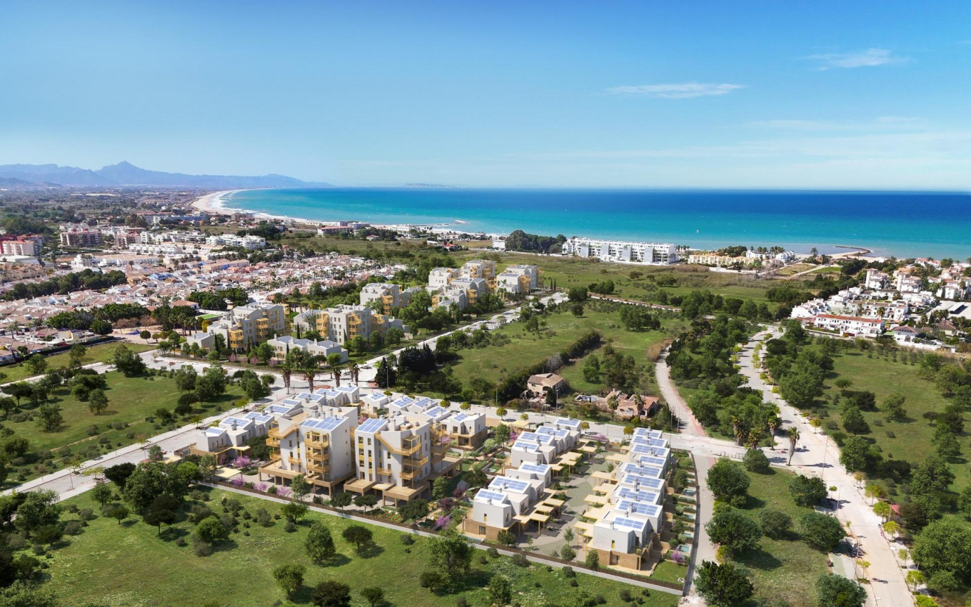 NIEUWBOUW WONINGEN IN EL VERGEL Nieuwbouw wooncomplex met 65 moderne appartementen met 2 slaapkamers en herenhuizen met 2 en 3 slaapkamers in El Vergel. Volgens de duurzaamheids- en energie-efficiëntiebenadering van het wooncomplex hebben de ontwerpers een project gecreëerd waarin eengezinswoningen met terrassen de boventoon voeren. Dit woonconcept biedt een omgeving waar gemeenschappelijke ruimtes toegankelijk zijn voor alle bewoners, terwijl elke woning zijn eigen privéruimtes heeft, zowel binnen als buiten, om dagelijks van te genieten. De gemeenschappelijke ruimtes ademen een natuurlijke en gastvrije sfeer. Als je de verschillende gebieden verkent, vind je perfecte ruimtes om te wandelen, te sporten en vooral om te fietsen. Ervaar een unieke levensstijl in deze woongemeenschap, waar elk detail is ontworpen voor jouw comfort en plezier. Neem een duik in het verfrissende zwembad, train in de fitnessruimte, ontspan in de sauna en deel onvergetelijke momenten met familie en vrienden in de social club. Uitrusting: Zwembad GYM Sauna Tuinen Social Club Strand Duurzame energie Residentieel complex is een gemeenschappelijke ruimte waar je kunt genieten van het strand van La Almadraba in zijn puurste essentie. Bewoners krijgen toegang tot deze ruimte aan het strand waar ze hun eigen evenementen kunnen organiseren, hun fietsen kunnen stallen, watersportuitrusting kunnen opbergen en een douche of duik in het zwembad kunnen nemen nadat ze van de zee hebben genoten. Een toegangspoort tot de zee aan de oevers van het strand van La Almadraba in Denia.
