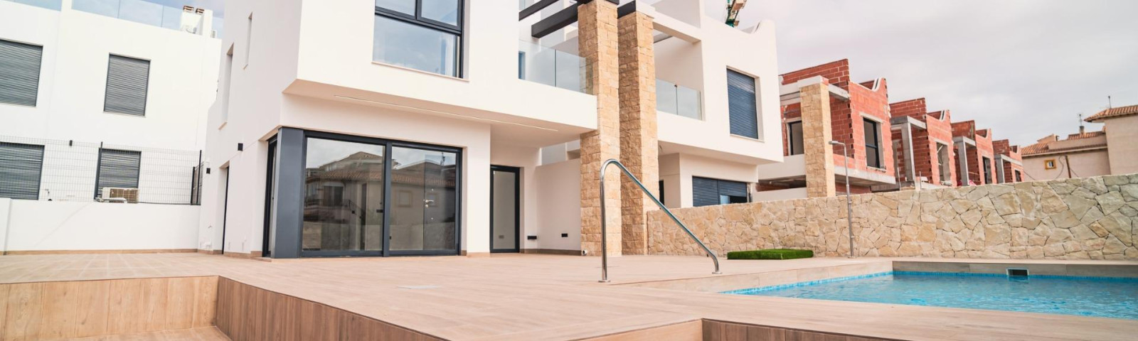 NIEUWBOUW VILLA IN LAS FILIPINAS Nieuwbouw spectaculaire luxe villa gebouwd over een verdieping op een perceel van 1765m2, heeft een terras, privé solarium, grote tuin met het zwembad en off road parkeerplaats. Het perceel heeft een helling die het mogelijk maakt om het huis op de top te situeren voor een sensatie van spectaculaire ruimtelijkheid en een vrij uitzicht vanuit alle kamers. Deze villa heeft 3 tweepersoonsslaapkamers, waarvan een met een en-suite badkamer en de andere 2 met een overdekt terras aan de achterkant. In de gemeenschappelijke ruimtes vinden we een complete badkamer, een toilet, een wasruimte en een grote woon-eetkamer met een open keuken. Alle kamers zijn georiënteerd op het terras aan de voorkant (85m2) met een groot overloopzwembad van 56m2 met twee zones, een standaard zwemgedeelte met een maximale diepte van 1,29m2 en een watergedeelte voor de kleintjes in de familie. Daarnaast is het huis uitgerust met een solarium van 70m2 om te genieten van het hogere uitzicht over het perceel en om een Chill Out-ruimte te plaatsen om in een meer privéruimte te genieten van de warme zomeravonden. Tot slot vinden we aan de achterkant een tweede overdekt terras, ideaal voor een meer afgelegen eetkamer. In dit gebied hebben we ook een parkeerplaats met capaciteit voor 5 auto's. Het ontwerp van deze villa is gebaseerd op een mediterraan en minimalistisch concept, waarbij speciaal belang wordt gehecht aan licht dankzij de grote ramen en de buitenruimtes die het huis perfect verbinden met de grote tuin via het grote terras en het overloopzwembad. Wat betreft de typologie van het huis, moet worden opgemerkt dat het is gebouwd op een enkele begane grond om meer comfort en meer harmonie te bieden aan de kamers. Het is een huis dat is ontworpen voor een gezin dat prioriteit geeft aan de gemeenschap en het genieten van de omgeving. Aan de buitenkant heeft de hele voorkant van de villa grote ramen. De strategische locatie valt op door de noordoriëntatie van het perceel, waardoor het een groot deel van de dag licht is. Wat betreft de locatie, het is gelegen in de Filipinas urbanisatie in Orihuela Costa en heeft alle benodigde voorzieningen op een paar meter afstand zoals apotheken, winkels, restaurants, het is ook gelegen op minder dan 20 minuten van het Torrvieja University Hospital, op 45 minuten afstand. Van de luchthaven van Alicante en minder dan 1 uur van het stadscentrum van Alicante. Ook moet worden opgemerkt dat het strand van Torrevieja op 15 minuten rijden met de auto ligt en dat er rondom de villa de 4 beste golfbanen van de hele provincie Alicante liggen, zoals Villamartin Golf, Campoamor Golf, Las Ramblas Golf en de prestigieuze Las Colinas Golf Course, die wordt beschouwd als een van de beste golfbanen van Spanje. Kortom, dit object heeft alle ideale kenmerken om te worden beschouwd als een exclusief, comfortabel en functioneel object en is bovendien gelegen op een strategische locatie.