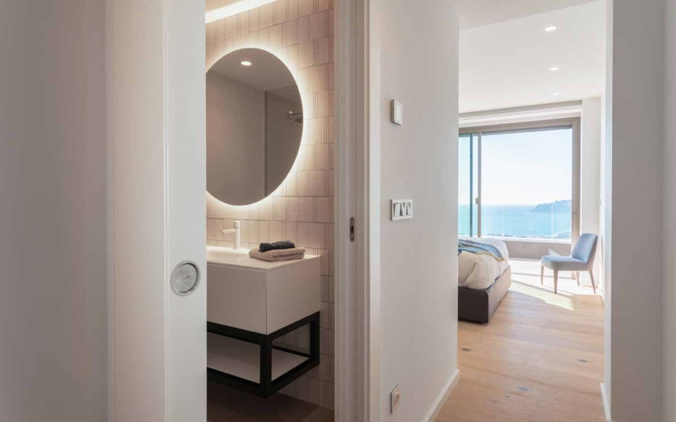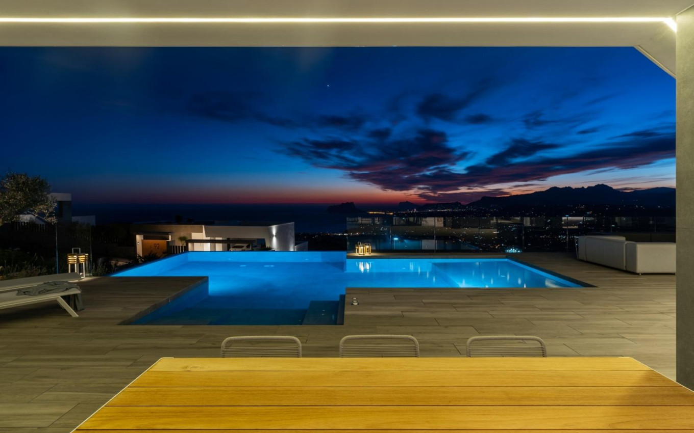 NIEUWBOUW LUXE VILLA IN CUMBRE DEL SOL Nieuwbouw iconische villa in Benitachell. Het ontwerp uit de 21e eeuw past perfect in de exclusieve omgeving van Residentieel Resort Cumbre del Sol. Het is gebouwd op een perceel van 1168 m2, waar je, omdat de villa op het zuidwesten ligt, kunt genieten van prachtige zonsondergangen. Alles aan deze villa schreeuwt kwaliteit en stijl uit, met een intelligent ontwerp dat een praktische indeling van de villa biedt die het uitzonderlijke uitzicht op de Middellandse Zee nog meer optimaliseert. Een huis met veel ruimtes om te genieten van het loungen en het gezinsleven aan zee. Er zijn verschillende kamers die allemaal met elkaar verbonden zijn om verschillende momenten van de dag in verschillende settings te kunnen beleven. Een eetkamer en woonkamer, een keuken met een centraal eiland waar je kunt genieten van een perfect ontbijt, en een grote zomerveranda met een BBQ. Al deze kamers zijn zo ingericht dat je kunt genieten van een goed gesprek, belangrijke familiegebeurtenissen kunt vieren of gewoon kunt ontspannen terwijl je naar de zee kijkt. De grote slaapkamer is ontworpen met het oog op comfort en ontspanning. Het is een privéruimte met een grote eigen badkamer met bad en douche met uitzicht op zee. Er is ook een grote inloopkast en toegang tot een privéterras. Cumbre del Sol ligt in Benitachell in het hart van de berg la Llorenca, ten noorden van de Costa Blanca. Het ligt tussen de twee kustplaatsen Javea en Moraira en is omgeven door uitzonderlijke beschermde gebieden zoals het natuurpark La Granadella. Het ligt vlakbij prachtige stranden en baaien en steden als Denia, Calpe en Altea. Of je nu geniet van een paar dagen, een vakantie, een seizoen of het hele jaar in ons luxe resort in Benitachell, je zult merken dat Cumbre del Sol aan al je verwachtingen voldoet. Golfers, duikers, natuurliefhebbers en zonaanbidders bevinden zich op slechts enkele minuten van de tientallen paradijselijke bestemmingen aan de Costa Blanca die onze urbanisatie omringen.