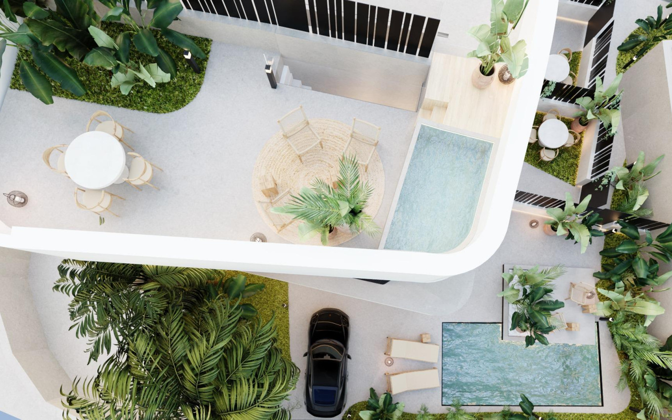 NIEUWBOUW HALFVRIJSTAANDE VILLA'S IN ORIHUELA COSTA Het wooncomplex bestaat uit 9 herenhuizen en halfvrijstaande villa's, verdeeld over 2 verdiepingen met 3 slaapkamers, 3 badkamers, open keuken met zithoek, privétuin, groot terras en solarium. Ontworpen om zowel in de winter als in de zomer van de beste temperatuur te genieten, met privégedeeltes met vrijwel het hele huis uitzicht en toegang tot de grote en luxe tuin en gemeenschappelijke ruimten. Het complex heeft een groot zandzwembad en tropische en paradijselijke tuinen die je het gevoel geven dat je in een luxe resort en tropisch paradijs bent. Ruime woon- en eetkamer met grote ramen die een comfortzone creëren met natuurlijk licht door het hele huis. Residentieel gelegen in de beste woonwijk van Orihuela Costa, het heeft alle diensten, perfect gecommuniceerd 2 minuten van de snelweg A-7. Los Dolses ligt in de buurt van het zeer populaire Villamartin gebied met toeristen en bewoners, het grootste deel van de gemeenschap bestaat uit West-Europese expats die zich daar hebben gevestigd in de afgelopen 15 jaar, vrijwel het transformeren van het oorspronkelijke dorp in een levendige het hele jaar door bestemming. Er zijn 3 golfbanen in de buurt en de stranden met blauwe vlag liggen op slechts 10 minuten rijden. Het complex ligt op 40 minuten van de luchthaven van Alicante en op 1 uur van de luchthaven van Murcia - Corvera.