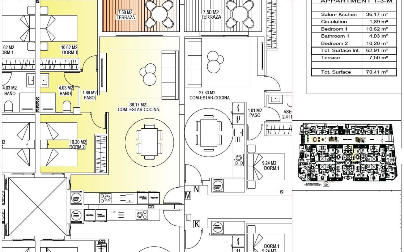 Moderne nieuwbouwappartementen in het centrum van San Miguel de Salinas Eigentijds wonen in een gezonde mediterrane omgeving Deze nieuwe woonwijk ligt in het charmante stadje San Miguel de Salinas, op slechts 10 km van de Middellandse Zee, en biedt de perfecte balans tussen modern comfort en een natuurlijke omgeving. Het gebied staat bekend om zijn nabijgelegen zoutmeren en uitzonderlijke microklimaat, dat als een van de gezondste van Europa wordt beschouwd. In dit rustige maar levendige stadje kunnen bewoners genieten van de authentieke mediterrane levensstijl, terwijl winkels, restaurants, supermarkten en alle essentiële voorzieningen op loopafstand liggen. San Miguel de Salinas ligt iets landinwaarts aan de Costa Blanca Zuid en biedt een weids uitzicht, frisse lucht en gemakkelijke toegang tot stranden, golfbanen en winkelgebieden. Stijlvolle appartementen ontworpen voor comfort en efficiëntie Het project bestaat uit twee moderne gebouwen, gescheiden door een aangelegde gemeenschappelijke tuin. Er zijn in totaal 56 moderne appartementen beschikbaar met 1, 2 of 3 slaapkamers, elk met een eigen terras. Elke woning is ontworpen met het oog op comfort, esthetiek en energie-efficiëntie, waarbij gebruik is gemaakt van hoogwaardige materialen en moderne isolatiesystemen. Elk appartement is voorzien van: Gepantserde toegangsdeur Badkamers met wastafels Voorbereiding voor airconditioning Energiecertificaat klasse A De indeling en oriëntatie van de woningen zorgen voor natuurlijk licht gedurende de hele dag, waardoor er een licht en uitnodigend interieur ontstaat dat ideaal is voor zowel permanent wonen als vakantiegebruik. Uitzonderlijke gemeenschappelijke ruimtes voor ontspanning en sociaal leven De gemeenschappelijke ruimte op de begane grond is ontworpen als het sociale hart van het project, omgeven door aangelegde tuinen, zitjes, fietsenstallingen en een kinderspeelplaats. Het is een ideale ontmoetingsplaats voor bewoners van alle leeftijden. Op het dak wacht een indrukwekkende recreatieruimte van 350 m2. Deze ruimte omvat een zwembad van 70 m2 met een apart kinderbad, pergola's, ligstoelen en schaduwrijke plekken, waar bewoners kunnen ontspannen terwijl ze genieten van een panoramisch uitzicht. Het dak is gemakkelijk bereikbaar met een van de drie liften en is voorzien van sanitaire voorzieningen voor extra comfort. Uitstekende locatie dicht bij belangrijke bezienswaardigheden Mediterrane stranden 10 km Winkelcentrum Zenia Boulevard 9 km Villamartin Golf 6 km Las Colinas Golf 8 km Jachthaven van Torrevieja 12 km Luchthaven van Alicante 60 km Luchthaven Murcia Corvera 55 km Een slimme investering aan de zuidkust van de Costa Blanca Dit wooncomplex combineert moderne architectuur, hoogwaardige afwerking en een uitstekende centrale ligging, waardoor het een uitstekende keuze is om te wonen, van uw vakantie te genieten of te verhuren. Neem vandaag nog contact met ons op voor meer informatie of om een bezichtiging te regelen van deze moderne appartementen in San Miguel de Salinas.
