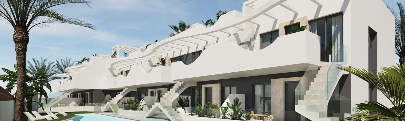 Exclusive New Build Bungalows in Pilar de la Horadada - Unique Style and Privileged Location A Unique Style that Defines your New Home This new development of 2 and 3 bedroom bungalows in Pilar de la Horadada stands out for its modern design and undulating structure, which gives each home a unique personality. You will be able to choose between: Ground floors with front garden and back patio. Top floors with private solarium. The residential complex has a communal swimming pool and spacious communal areas designed for the relaxation and enjoyment of the whole family. In addition, the development offers an outdoor gym, communal jacuzzi and parking area for bicycles, as well as a parking space assigned to each property with the option of charging electric vehicles, designed to offer you maximum comfort and quality of life. Bright and high quality interiors Each home has been designed to offer an experience of comfort and functionality. Open-plan spaces maximise the feeling of spaciousness and light, while neutral tones and wood finishes create an elegant and welcoming ambience. Spacious and bright bedrooms, with the master bedroom offering access to a private terrace. Open concept kitchen, integrated into the living room for convenience. Modern bathrooms with top quality materials. Pilar de la Horadada - Quality of Life on the Costa Blanca Located in the province of Alicante, Pilar de la Horadada is a coastal town that combines tradition with a relaxed atmosphere. It is known for its beautiful beaches, such as Playa de las Higuericas, with golden sand crystal clear Mediterranean waters. In addition to its coastline, the town has a vibrant main street lined with shops, supermarkets, restaurants and picturesque squares. Its excellent infrastructure includes cycle paths, hiking trails and a wide variety of sporting activities. Proximity to Major Points of Interest This residential development offers convenient access to the most important destinations in the area: Torre de la Horadada beach - 3 km (5 min drive). Lo Romero Golf Course - 5 km (10 min drive). La Zenia Boulevard Shopping Centre - 15 km (15 min drive). Corvera Airport (Murcia) - 40 km (40 min drive). Alicante Airport - 55 km (55 min drive). Secure your Costa Blanca Property Today Don't miss out on the opportunity to purchase a brand new property in an exceptional location. Contact us today for more information and to arrange a viewing.