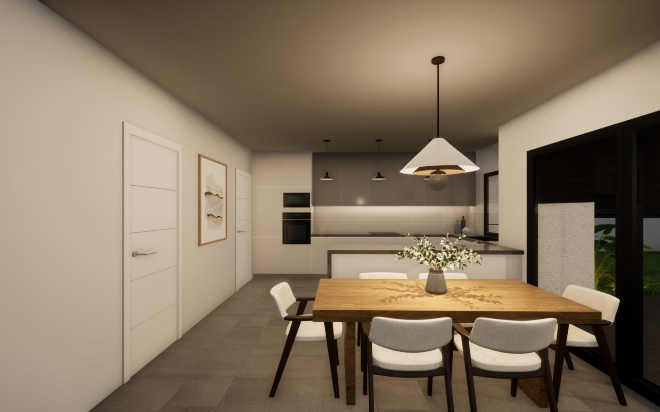 NEW BUILD VILLAS IN PINOSO New Build Independent modern villas that can be built on rustic or urban plots of land we have a wide range available in the area of Pinoso: • 3 bedrooms, 2 bathrooms • Private swimming pool • Solarium • Full installation of air conditioning • Full equipped kitchen • Big choice of quality materials • Mains electricity and water • 4 solar panels included • AA Energy Label • Plots from 10.000 m2 in various locations to choose from. • 3.000 m² fenced plot for easy maintenance • Motorised sliding gate On the rustic plots, about 3.000 m2 of the total plot will be fenced and the houses will be delivered with about 1.000 m2 of gravel around the house. The house has a private swimming pool and photovoltaic solar panels for the electricity supply. There are several rustic plots to choose from in different locations, each with a different price (in the prices published in this advert a plot with a value of 40.000 eur has been considered, if the buyer chooses another plot, the final price will be recalculated accordingly). The delivery period is 8 months from the granting of the building licence. It is acquired under a self-promotion regime: the buyer makes payments on account of the price as the builder executes the work.