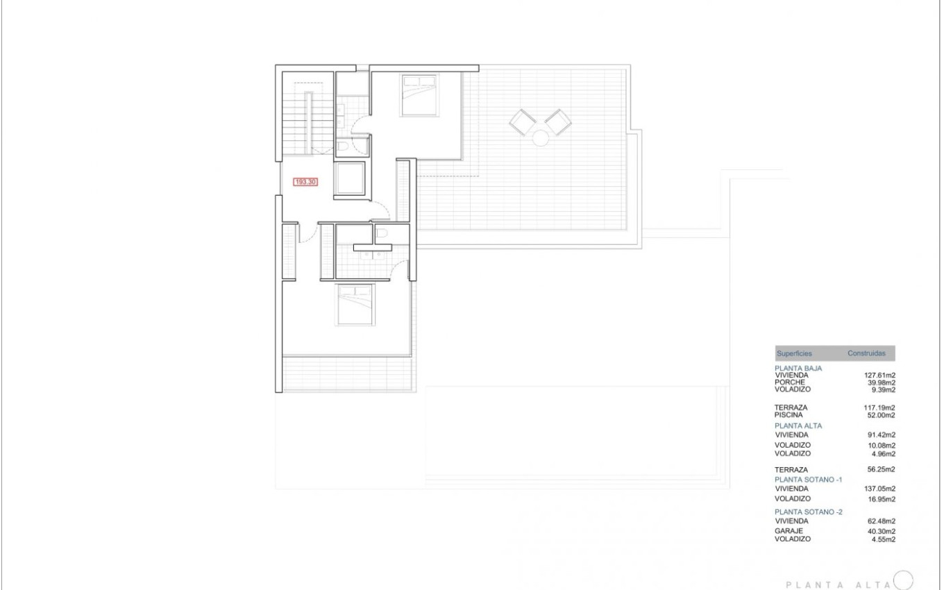 NEW BUILD LUXURY VILLA IN BENISSA New Build Luxury villa in Benissa with VIEWS TO THE SEA and the Peñón de Ifach. This villa, with exposed panelled concrete finishes, has 4 floors that are connected with an elevator and an internal staircase. The ground floor has a large open living-dining-kitchen area and guest toilet. The kitchen is fully equipped and has a cooking island. Sliding doors at ceiling height give direct access to a spacious terrace and pool. The upper floor contains two bedrooms with en-suite bathrooms and a terrace. The property has 2 basements. The basement number 1 has another two bedrooms, each with its own bathroom and a laundry room. The basement number 2 houses the gym, the cellar and a garage with capacity for 4 cars. The house has air conditioning (with ducts) and central heating with heat pump. It has an automatic entrance door with a separate pedestrian entrance and an intercom. On the same level as the main house is the swimming pool. Includes exterior carpentry with automatic shutters and mosquito nets in bedrooms, fitted wardrobes with modules and basic alarm installation. Benissa is located towards the northern end of the Costa Blanca, just off the A-7 Motorway; the trip to and from Alicante airport takes just over one hour. The town is small, but enchanting with its medieval architecture and charming plazas. Although only 5 kilometres distance from the sea – as the crow flies, the nearest beaches by road are approximately 11 kilometres away and the seaside towns of Calpe (to the south) and Moraira (to the north east) are approximately 12 kilometres distance. The views of the Mediterranean, the weather, wild nature, the quality of the light, the towns architecture, Benissa will seduce you. Alicante airport located 1 hour away.