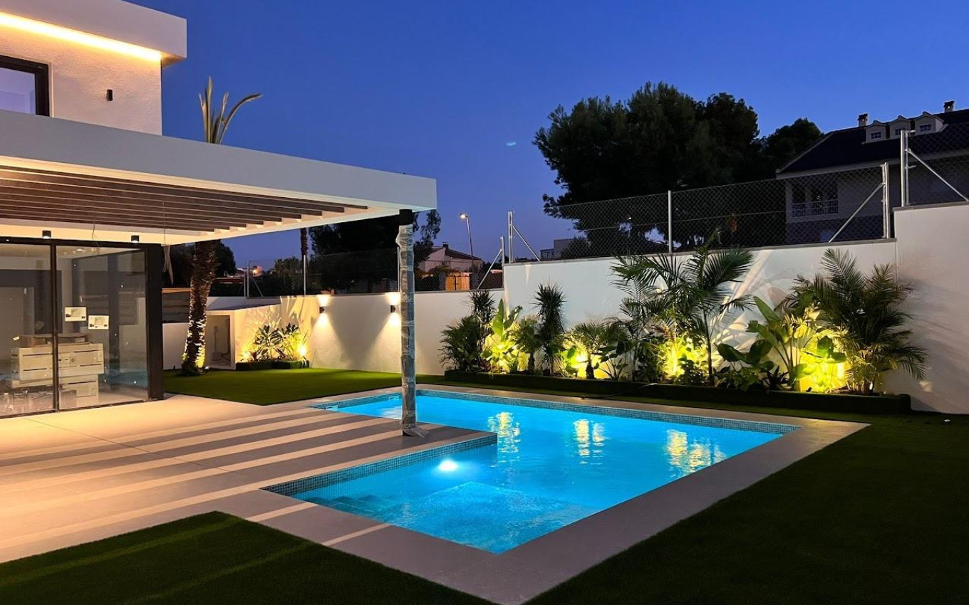 NEW BUILD VILLAS IN ORIHUELA COSTA New Build small residential of 4 modern villas located in Lomas de Cabo Roig, Orihuela costa. Each villa has 3 bedrooms and 2 bathrooms, guest toilet, open plan kitchen with the lounge area, fitted wardrobes, large terrace, private garden with the pool and off road parking space. An options basement at an extra cost. Features: Aluminium exterior carpentry with high quality profiles. Fully equipped closets and dressing. Interior carpentry in lacquered wood. Kitchen furniture. Lightning pack.. Motorized self-locking blinds in the bedrooms. Plumbing equipment, fully equipped bathrooms. Pool with lounge area. Porcelain tiles with flexible C2 adhesive. Smooth paint inside. Special thermal and acoustic isolation. Totally landscaped garden. Private pool. Videophone. Pre-installation of air conditioning by conduct. Energy efficient Aero thermal water heater. Underfloor heating in bathrooms. Lomas de Cabo Roig located one kilometer inland from the coastline of Cabo Roig with beautiful beaches, part of the Orihuela Costa. It is situated in an area which is well connected by roads, has plenty of facilities, and shopping centres nearby. Lomas de Cabo Roig located 30 minutes from Alicante airport and 1 hour Murcia - Corvera airport.