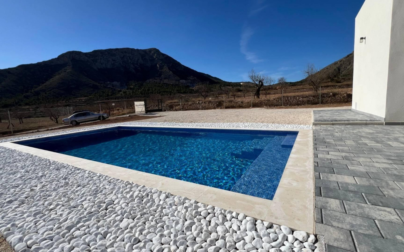 NEW BUILD VILLA IN JUMILLA New Build villa on a large plot in the municipality in Jumilla. Modern one level villa built on a huge plot of 5,000 m2, has 3 bedrooms, 2 bathrooms, guest toilet, open-plan fitted kitchen with spacious living-dining room, large floor-to-ceiling windows with a lot of natural light, built-in wardrobes. Private swimming pool. Garage for 2 cars. Located in a quiet and residential environment, this villa allows you to enjoy the privacy and tranquillity you desire. Jumilla is located in the province of Murcia, between the Mediterranean coast and the Castilla de La Mancha high, flat arid plains. The area is characterised by its wide valleys and high plains dotted with mountains at an altitude between 320 and 900m above sea level. Jumilla specializes in wines based on the Monastrell grape variety, which accounts for around 80 percent of vines. It is Murcia's oldest region, established in 1966. Since the 1990s, when the region's potential to produce quality wines came to the fore, Jumilla has attracted a lot of outside attention. Producers from other Spanish regions as well as foreign companies have set up wineries here.