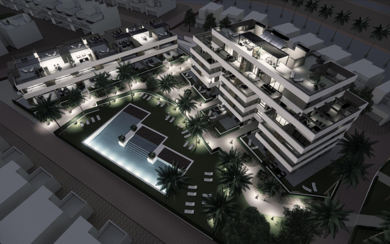 NEW BUILD RESIDENTIAL COMPLEX IN PRIVATE GATED RESORT IN PROVINCE OF MURCIA New Build residential complex of apartments and bungalows in private gated resort. Beautiful properties have 1, 2 and 3 bedrooms and 1 or 2 bathrooms, open plan kitchen with spacious living room, fitted wardrobes, terraces with views of the green areas of this large luxury resort. Ground floor bungalow with private garden, top floor bungalows with private solarium. Complex has a communal pool and all properties have a parking pace and a storage room. Located in a private gated resort, with a main access entrance and 24 hours security. The resort is designed around an impressive 126.000 m2 green area. It comprises walking and cycling paths, sport facilities, paddle and tennis courts, a mini-golf course, gardens, dog parks, leisure areas, clubhouse…. Also in the central area is the jewel of the resort, a crystal-clear artificial lake of almost 17.000m2 of water surface, surrounded by white sandy beaches and palm trees, bringing a piece of the Caribbean to the Murcia Region. There are 2 islands in the lake, one of them has its own bar, there are also “beach Chiringuitos” spread around the lake. The resort is strategically located less than 4 km from the beach and the town of Los Alcázares, where you can practice various water sports, surrounded by several golf courses and the city of Cartagena less than 15 minutes by car and 22 km from Murcia airport, therefore having a wide cultural, gastronomic and sports offer within reach.
